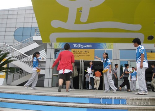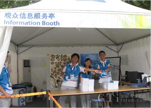 在比賽結(jié)束前30分鐘,語言支持志愿者們來到信息服務(wù)亭,維持秩序,幫助外國觀眾的信息咨詢和領(lǐng)取觀眾指南,協(xié)助場館志愿者迎接又一次人流高峰!罢埮藕藐牐己玫闹刃蛑x謝您的合作!”觀眾在志愿者的維持下秩序井然。