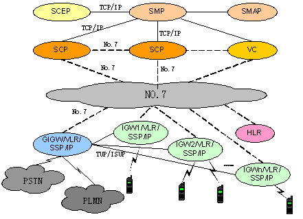 具備多個本地網(wǎng)甚至全省統(tǒng)一建設業(yè)務平臺的優(yōu)勢,SCP通過No.7信令鏈路與移動IGW/SSP相連,所以可以統(tǒng)一在省會城市設置一套PCS智能網(wǎng)系統(tǒng),即可向全省的PCS用戶提供智能業(yè)務。