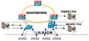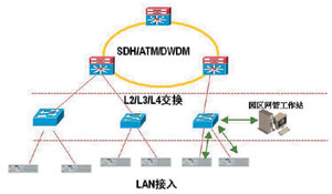 寬帶接入網(wǎng)管理主要指針對(duì)接入?yún)R聚、用戶接入層設(shè)備的管理(如圖1所示)。針對(duì)寬帶接入網(wǎng)的發(fā)展現(xiàn)狀,現(xiàn)在主要采用集中式網(wǎng)管方案,集中式網(wǎng)管方案又分城域與園區(qū)集中網(wǎng)管方案兩種,同時(shí),另一種網(wǎng)管模式——分布式網(wǎng)管方案也正在興起。