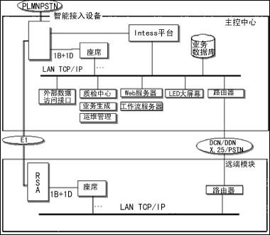 遠端座席通過RSA方式拉遠,通過路由器和主控中心組成廣域網(wǎng)來共享主控中心的數(shù)據(jù)。其它設備,如智能接入設備、服務器、數(shù)據(jù)訪問接口等都放在主控中心。