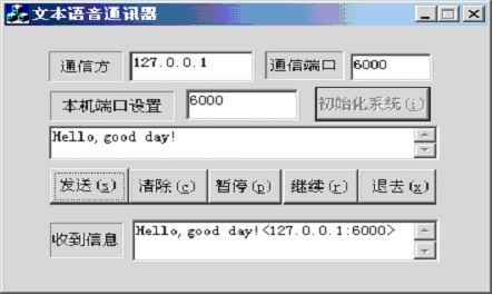 本文的基本設(shè)計(jì)思路: 通信方,將通話文本信息通過網(wǎng)絡(luò)傳輸?shù)綄Ψ?對方接收到信息后,顯示信息并同時(shí)通過MSTTS 播放出來。