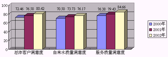 (2)率先建立以公布水質(zhì)信息為特點的客戶宣傳系列。過去水質(zhì)具有保密性,不能向外公開。近年來,市政府為改善水質(zhì)投入了大量的資金,使自來水質(zhì)量達到或超過了國家飲用水標準,但受各種飲用水產(chǎn)品的宣傳影響,人們對自來水疑慮重重。據(jù)客戶滿意度調(diào)查,客戶對水質(zhì)的重視程度為0.63,遠遠高于對水量0.37的重視程度,說明客戶對水質(zhì)的期望值較高。為正確引導客戶的期望,市北公司參照國外先進國家的慣例,爭取政府部門的支持,于2000年率先向社會公布了年度水質(zhì)報告,全面地介紹自來水水質(zhì)指標完成情況,并系統(tǒng)的建立了水質(zhì)信息公布制度,包括公布年度水質(zhì)報告,每天在公司網(wǎng)站上發(fā)布主要水質(zhì)指標及水壓、水量信息。在此基礎(chǔ)上,公司又編印"市北供水服務(wù)"小報,定期發(fā)放至市北供水區(qū)域的數(shù)千家居委會和物業(yè)公司及相關(guān)部門。特別從今年開始,公司通過改版后新水費帳單上的"市北供水服務(wù)"宣傳欄,又與廣大客戶建立了新的信息溝通渠道,初步形成了市北公司的客戶宣傳構(gòu)架,用較低的宣傳成本提高了客戶滿意度。