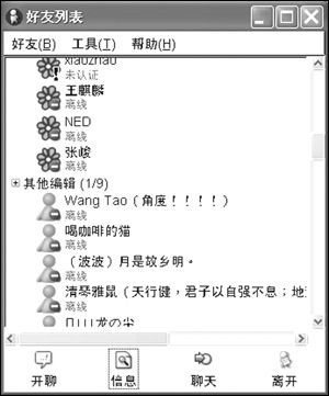 注意:在默認(rèn)設(shè)置下Gaim是不顯示離線好友的,當(dāng)然,你也可以在“好友”菜單中選中“顯示離線好友”項(xiàng)。