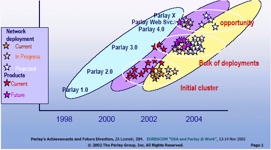 2003年5月底,世界上已經(jīng)有45個業(yè)務(wù)提供商正在使用Parlay 3.0或正準(zhǔn)備采用Parlay技術(shù)。