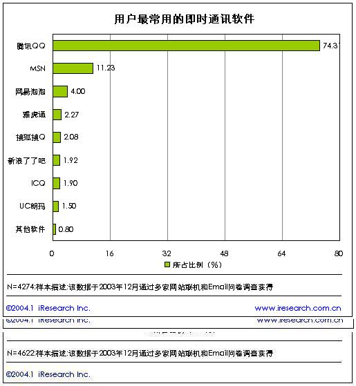 新迎來(lái)的2004年對(duì)于中國(guó)的互聯(lián)網(wǎng)是充滿無(wú)限憧憬的一年,互聯(lián)網(wǎng)用戶打到了近8000萬(wàn),在繼短信、網(wǎng)絡(luò)廣告、網(wǎng)絡(luò)游戲成為中國(guó)網(wǎng)絡(luò)企業(yè)發(fā)家致富的法寶之后,即時(shí)通訊又將是一塊無(wú)限誘惑的領(lǐng)地,成為門戶網(wǎng)站、電信運(yùn)營(yíng)商展開廝殺的新大陸。