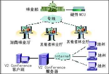 湖南省林業(yè)廳是省政府行業(yè)電子政務(wù)系統(tǒng)的示范單位,非常重視計算機(jī)網(wǎng)絡(luò)平臺上的各種軟件應(yīng)用。為了減少會議支出,提高辦公效率,湖南省林業(yè)廳經(jīng)過廳務(wù)會研究決定,希望充分利用全省十四個地州市現(xiàn)有的計算機(jī)和音響設(shè)備建立全廳的網(wǎng)絡(luò)視頻會議系統(tǒng)。在經(jīng)過公開競標(biāo)后,V2產(chǎn)品憑借著其優(yōu)越的性能價格比和售后服務(wù)保證,成功中標(biāo)。