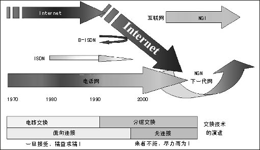 傳統(tǒng)電信網(wǎng)和互聯(lián)網(wǎng)都面臨著挑戰(zhàn),基于電話業(yè)務(wù)設(shè)計(jì)的電路交換網(wǎng)不能靈活適應(yīng)帶寬各異的數(shù)據(jù)業(yè)務(wù)的發(fā)展。專為數(shù)據(jù)業(yè)務(wù)設(shè)計(jì)的互聯(lián)網(wǎng)則存在著安全性、可管理性、商業(yè)模式等問(wèn)題的困擾。NGI對(duì)目前電信網(wǎng)的主要盈利業(yè)務(wù)語(yǔ)音的質(zhì)量保證以及對(duì)電信網(wǎng)增長(zhǎng)空間很大的業(yè)務(wù)(移動(dòng))關(guān)注不夠。NGI可能達(dá)到的目標(biāo)不能滿足電信界的需要。因此,在NGI之后ITU和ETSI等提出了更高的目標(biāo)——NGN,這就是NGN的提出背景。信息產(chǎn)業(yè)部電信研究院科技委副主任委員雷震洲認(rèn)為,兩大亮點(diǎn)點(diǎn)燃了NGN:一是數(shù)據(jù)超過(guò)語(yǔ)音的信息需求,全球互聯(lián)網(wǎng)用戶目前已逾7億,全世界在網(wǎng)上傳送的以IP為代表的數(shù)據(jù)業(yè)務(wù)量已經(jīng)超過(guò)語(yǔ)音業(yè)務(wù)量;二是移動(dòng)超過(guò)固定的個(gè)性化需求,全球移動(dòng)用戶已經(jīng)超過(guò)13億,近100個(gè)國(guó)家的移動(dòng)用戶數(shù)已經(jīng)超過(guò)固定用戶數(shù),我國(guó)在2003年10月移動(dòng)用戶也超過(guò)了固定用戶數(shù)。