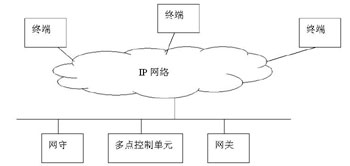 基于H.323的軟件視頻會議系統(tǒng)由相應的協(xié)議族提供支持,使得這樣的系統(tǒng)能夠有很強的適應性、兼容性。H.323建議的多媒體會議系統(tǒng)不是基于客戶服務器結構,而是基于傳統(tǒng)的電話呼叫網絡模式。H.323為基于網絡的通信協(xié)議定義了4個主要的組件:終端(Terminal)、網關(Gateway)、網守(Gatekeeper)和多點控制單元(MCU);就負浣Y構結構如圖:
