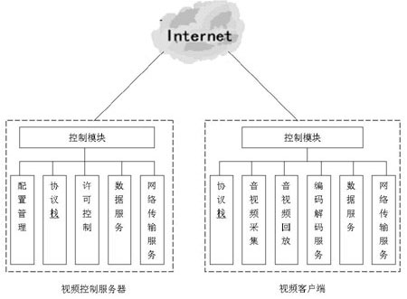 視頻會議系統(tǒng)一般由視頻控制服務器、會議客戶端軟件以及IP傳輸網絡系統(tǒng)組成(如圖1所示)。