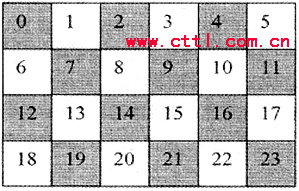 如圖3所示,陰影部分宏塊屬于片組0,白色部分屬于片組1。假設(shè)片組O在傳輸過程中丟失,由于丟失宏塊的相鄰宏塊都屬于片組1,這樣差錯(cuò)恢復(fù)工具就會(huì)有更多的可利用信息來恢復(fù)丟失片的數(shù)據(jù)。