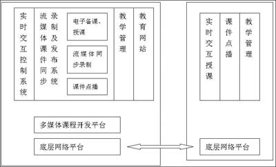 實時教學在一般情況下的實現(xiàn)過程如下: 實時教學開始后,通過攝像頭和麥克風現(xiàn)場采集教師講課的視頻和音頻作為編碼器輸入,經(jīng)編碼計算機編碼為媒體流,并發(fā)送到流媒體服務器,然后服務器啟動服務模塊,通過多播發(fā)布媒體流,學生用客戶端播放器接受和播放媒體流。為了提供交互性,在課件制作中可以相應地增加所需的功能。例如在課堂上回答問題或討論問題。教師控制發(fā)言權,得到教師的允許后,學生可以回答問題或同其他同學交流來討論問題。這樣遠程面授就可以成為現(xiàn)實了,學生只需要一臺PC、一個Modem就可以坐在家里聽課并實時地和老師交互。