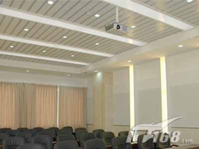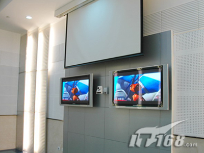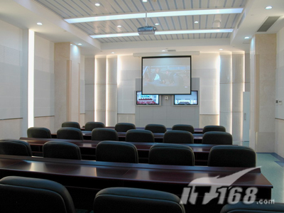 在副會場方面,和主會場區(qū)別不大,不過比主會場要光亮一點,面積也小了很多,所以主顯示系統(tǒng)只需要SONY PX40正面投影(120寸)就可以搞定。VPL-PX40可以多種方式安裝,包括桌面正投,吊頂及背投。供選購的兩款鏡頭擴展了安裝的靈活性。中央控制開關(guān)功能讓用戶能通過中央電源開關(guān)直接開關(guān)投影機。VPL-PX40還配備了獨特的密碼認證系統(tǒng),采用SONY液晶板的新型光學(xué)系統(tǒng),結(jié)合265W