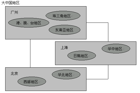 建設(shè)單點外包呼叫中心需要具備良好的地域服務(wù)功能,并應該是政治、商業(yè)中心,有較強的服務(wù)需求,例如:長江三角洲的服務(wù)可選擇上海建設(shè)第一個基點中心,珠江三角洲可選擇廣州為第一基點中心,華北可選擇北京為第一基點中心。如下圖示意: