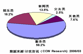 2006年,IVR業(yè)務的發(fā)展已經(jīng)具備了良好的外部條件。首先,具有龐大的潛在用戶群。有關統(tǒng)計顯示,截至2005年11月,中國移動用戶數(shù)量達到3.88億,固定電話用戶數(shù)量達到3.51億,其中無線市話用戶數(shù)量達到8622萬。其次,市場容量急劇膨脹;再次,業(yè)務收入快速增長;最后,IVR不受手機型號的限制,潛在用戶的普及率極高。這些使得IVR具有良好的發(fā)展?jié)摿,計世資訊(CCW Research)認為,IVR是繼短信(SMS)之后的又一座大型金礦。