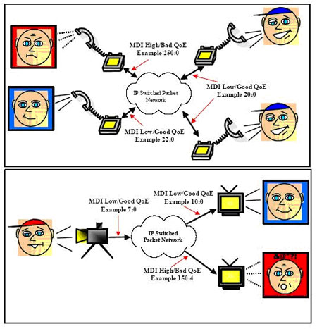 factor,都能夠在MDI定量和實(shí)時(shí)獲得的抖動(dòng)和丟包信息基礎(chǔ)上推算出來。網(wǎng)絡(luò)的入口、出口以及重要的路由器都可以設(shè)置MDI監(jiān)控,采集的信息被送到網(wǎng)絡(luò)監(jiān)管中心,提醒業(yè)務(wù)提供商語(yǔ)音和視頻業(yè)務(wù)的動(dòng)態(tài)質(zhì)量,設(shè)置能預(yù)測(cè)MDI狀況。