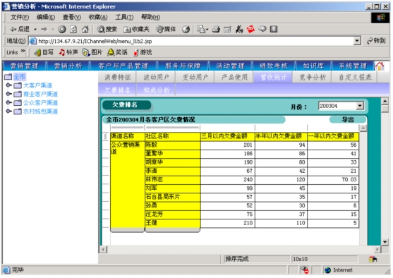 本系統(tǒng)通過對本地計費帳務系統(tǒng)、網(wǎng)間結(jié)算系統(tǒng)、1000號客戶服務系統(tǒng)、“九七工程”系統(tǒng)、資源管理系統(tǒng)的動態(tài)相關數(shù)據(jù)的提取,按日(天)記錄并分析開展營銷服務工作所需的客戶基本資料、客戶關系資料、客戶收入信息、客戶消費行為信息、客戶變動信息、客戶障礙信息、客戶投訴信息、客戶競爭動態(tài)信息等支撐信息,指導各類客戶經(jīng)理開展有針對性營銷服務工作。