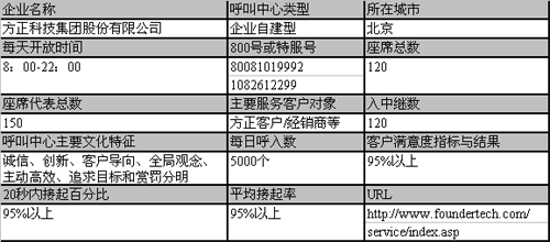 運(yùn)營6年來,方正呼叫中心的運(yùn)營管理水平已不斷完善,客戶滿意度的不斷提高。據(jù)稱,目前該呼叫中心客戶滿意度已達(dá)到95%以上。