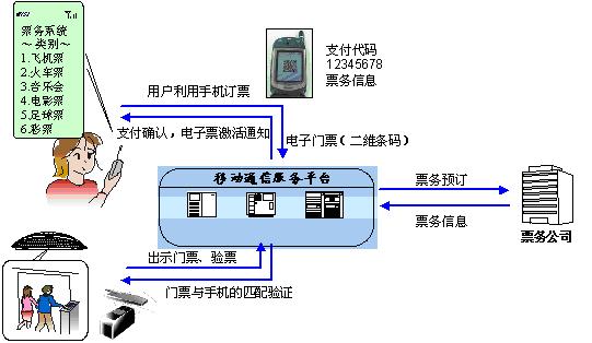 何謂手機(jī)條碼?手機(jī)條碼是以手機(jī)短信的方式將條碼發(fā)送到手機(jī)上并顯示在手機(jī)液晶屏幕上的條碼新形式。這是一種快速便捷的以確認(rèn)使用者身份為目的的無(wú)紙化掃描新形式,通過(guò)條碼閱讀設(shè)備對(duì)手機(jī)條碼的閱讀來(lái)獲取相應(yīng)的信息,從而方便的確認(rèn)使用者的身份。它可以被廣泛應(yīng)用于網(wǎng)絡(luò)購(gòu)物、電子票據(jù)、會(huì)員卡、電子支付等領(lǐng)域,為這些領(lǐng)域健康快速的成長(zhǎng)和發(fā)展提供了新的推進(jìn)作用。鑒于信息量在此類應(yīng)用中有比較大的需求,故現(xiàn)在此項(xiàng)目中用的是二維條碼,且以QR,DataMatrix居多。項(xiàng)目實(shí)施過(guò)程中涉及到的硬件設(shè)備包括手機(jī)(需要支持WAP服務(wù))和手機(jī)條碼閱讀器。手機(jī)通過(guò)訪問(wèn)移動(dòng)通訊平臺(tái),獲取電子門票信息,同時(shí)移動(dòng)通訊平臺(tái)根據(jù)手機(jī)驗(yàn)證信息反饋給手機(jī)一個(gè)電子二維條碼。當(dāng)觀眾觀看電影時(shí),在檢票處出示手機(jī)上的二維條碼,系統(tǒng)通過(guò)條碼閱讀器識(shí)讀條碼信息并對(duì)信息進(jìn)行驗(yàn)證,驗(yàn)證通過(guò)后系統(tǒng)將從手機(jī)賬戶上自動(dòng)扣取相關(guān)費(fèi)用。利用手機(jī)條碼實(shí)現(xiàn)對(duì)大型活動(dòng)門票的管理,將使票務(wù)系統(tǒng)得到安全保障,同時(shí)也會(huì)提高極大的提高票務(wù)管理工作的效率,降低票務(wù)成本,提升客戶服務(wù)質(zhì)量。
