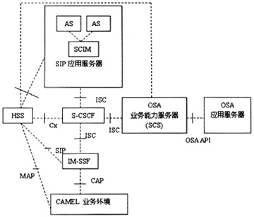 R5在業(yè)務(wù)方面除原有的CAMEL、OSA之外,新支持SIPAS。IMS的業(yè)務(wù)架構(gòu)如圖2所示: