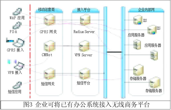 通過多種方式和多種設備實現(xiàn)隨時隨地與企業(yè)的信息系統(tǒng)進行溝通是企業(yè)快速響應市場的前提,本文提出一種建立無線商務平臺的方案,可以在一定程度上滿足企業(yè)的上述需求。
