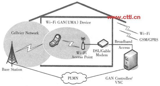 (3)終端融合。終端融合主要是指能夠提供固定和移動網(wǎng)絡(luò)連接的智能終端(見圖3),用戶采用多模終端后,可以根據(jù)自己的意愿選擇接入最適合的網(wǎng)絡(luò):固定或移動網(wǎng)絡(luò),而網(wǎng)絡(luò)本身也可以智能地根據(jù)用戶的接入方式作出最佳的動作。