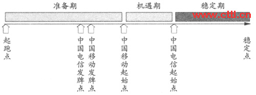 - 準(zhǔn)備期是指從現(xiàn)在到中國電信首發(fā)業(yè)務(wù)起始點這段時期。這其中包含了中國電信發(fā)牌時間點。