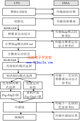 DSP嵌入式程序受硬件資源的限制,對程序流程和數(shù)據(jù)組織需要從硬件資源和代碼運行效率上做仔細的考慮。通過分析AVS-M編碼器的程序流程,借助實驗中積累的經(jīng)驗,本文給出了AVS-M編碼器的優(yōu)化方案,主要介紹Cache性能優(yōu)化、存儲空間的分配以及CPU與DMA的并行性設(shè)計等。