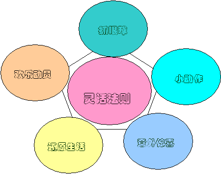 接受培訓(xùn)的學(xué)員不論年齡、性別、身份,只要是坐在一起的培訓(xùn)的就一定要動起來,只是靠實施者精彩的演講,堅持一二個小時還可以,堅持一天、二天甚至更多時間就難保學(xué)員不瞌睡了。因而我把這個環(huán)節(jié)設(shè)計為“歡迎總動員”,很小的時候就聽說過“喻教于樂”這與西方教育中重視“動手能力”的初衷是一致的。因而游戲是一定要作的。培訓(xùn)實施中使學(xué)員動起來的游戲一定要有意義,而非大家隨便樂一下就完了,如情景游戲、團(tuán)隊游戲、創(chuàng)造力游戲等等。