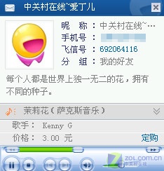請(qǐng)注意看圖4的下方,在兩個(gè)好友昵稱方均顯示有一行藍(lán)色文字,分別是“今天你要嫁給我”和“茉莉花”。知道這兩行藍(lán)色文字代表什么嘛?這是你的好友用戶當(dāng)前所擁有的彩鈴。