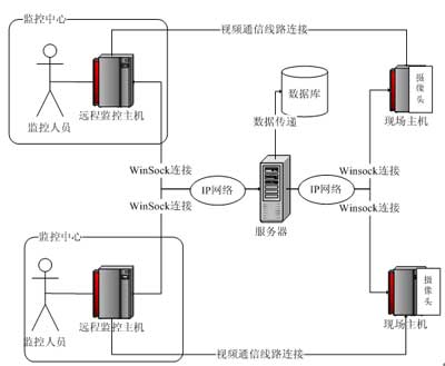 本系統(tǒng)基于瘦客戶端的C/S模式,在體系結(jié)構(gòu)上采用以服務(wù)器為中心的星型結(jié)構(gòu),創(chuàng)新性地把監(jiān)控現(xiàn)場(chǎng)端和監(jiān)控中心端C角色化。即在本系統(tǒng)中所有的監(jiān)控現(xiàn)場(chǎng)端和監(jiān)控中心端相對(duì)整個(gè)系統(tǒng)的架構(gòu)而言都是客戶端,它們的通信都需要經(jīng)過服務(wù)器的驗(yàn)證中轉(zhuǎn)。同時(shí),監(jiān)控中心使用者的登錄由于這種架構(gòu)模式,也必須要經(jīng)過服務(wù)器的驗(yàn)證才能成功登錄,進(jìn)而獲得監(jiān)控的權(quán)利。