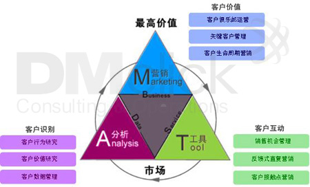 數(shù)據(jù)庫(kù)營(yíng)銷(xiāo)的內(nèi)含在于從“客戶(hù)分析”(即A的環(huán)節(jié),Customer Analysis)到“市場(chǎng)營(yíng)銷(xiāo)策略”(即M的環(huán)節(jié),Marketing Strategy)再到“營(yíng)銷(xiāo)工具組合”(即T的環(huán)節(jié),Tools mix)的這么一個(gè)過(guò)程。先要搞清楚哪些客戶(hù)是有價(jià)值的,價(jià)值客戶(hù)的購(gòu)買(mǎi)行為是什么樣的,有什么購(gòu)買(mǎi)偏好,買(mǎi)過(guò)什么樣的產(chǎn)品等,再到研究對(duì)他們是采取“交叉銷(xiāo)售”、“升級(jí)銷(xiāo)售”還是要去市場(chǎng)上找到類(lèi)似的潛在客戶(hù)群體進(jìn)行“新客戶(hù)獲取”,同時(shí),制定你的產(chǎn)品組合和價(jià)格組合。之后,才考慮在“客戶(hù)告知”到“客戶(hù)交互”到“客戶(hù)購(gòu)買(mǎi)”再到“付款/交付”四個(gè)環(huán)節(jié)采用何種營(yíng)銷(xiāo)方式或哪幾個(gè)營(yíng)銷(xiāo)方式,根據(jù)不同的客戶(hù)群制定不同的“營(yíng)銷(xiāo)渠道組合”和“營(yíng)銷(xiāo)工具組合”。這個(gè)由“客戶(hù)分析”到“市場(chǎng)營(yíng)銷(xiāo)策略”再到“營(yíng)銷(xiāo)工具組合”的過(guò)程我們把它稱(chēng)之為“AMT”,也就是真正意義上的“數(shù)據(jù)庫(kù)營(yíng)銷(xiāo)”。