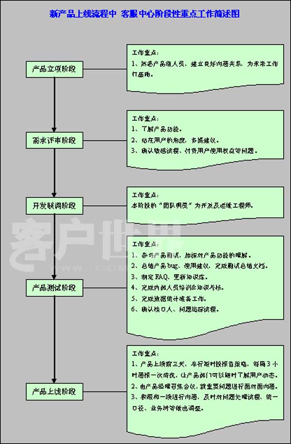 這個階段,是產(chǎn)品經(jīng)理最繁忙的,對于客服中心來講,也是一個關(guān)鍵階段,在這期間,要求客服中心做到: