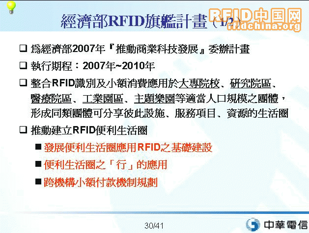 目前,中華電信主要鎖定的RFID應(yīng)用領(lǐng)域包括:車牌號碼管理、交通管理、重要物品管理、人員監(jiān)控、門禁管理、電子學(xué)生證管理等。