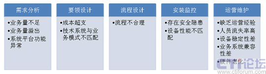 要領(lǐng)設(shè)計(jì)階段風(fēng)險(xiǎn):在該階段,企業(yè)將決定呼叫中心的建設(shè)規(guī)模、技術(shù)設(shè)備、組織架構(gòu)及運(yùn)營模式等一系列環(huán)節(jié)。此過程中,最容易且是最嚴(yán)重的風(fēng)險(xiǎn)在于成本估算的差異和技術(shù)系統(tǒng)與業(yè)務(wù)模式的不匹配。多數(shù)企業(yè)在呼叫中心建設(shè)成本估算時(shí)由于經(jīng)驗(yàn)的缺乏無法全面預(yù)測建設(shè)成本,特別是對(duì)運(yùn)營費(fèi)用的把握常常相差數(shù)倍。因此,實(shí)際建設(shè)成本過分超出預(yù)算成為困擾項(xiàng)目執(zhí)行者的一大難題。這就使得企業(yè)對(duì)呼叫中心的投入猶如一個(gè)無底洞,一投再投,嚴(yán)重影響了企業(yè)資金鏈的正常運(yùn)轉(zhuǎn),也為呼叫中心的“成本”角色加重了色彩。此外,很多公司或者系統(tǒng)集成商因?yàn)槌跏纪度氤杀、建設(shè)經(jīng)驗(yàn)或者運(yùn)營經(jīng)驗(yàn)等方面的限制,在呼叫中心建設(shè)初期很重視技術(shù)平臺(tái)的建設(shè),但忽視了運(yùn)營思想在系統(tǒng)方案中的體現(xiàn),在系統(tǒng)建成后,再去完善運(yùn)營系統(tǒng),這樣極大地增加了呼叫中心的運(yùn)營和管理成本,也影響到管理效率。