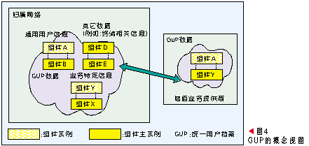 GUP中一個(gè)用戶相關(guān)的數(shù)據(jù)由多個(gè)數(shù)據(jù)組件構(gòu)成,每個(gè)組件又可以包含多個(gè)數(shù)據(jù)單元。在網(wǎng)絡(luò)中用戶數(shù)據(jù)每個(gè)數(shù)據(jù)組件只有一個(gè)主實(shí)例,但是可以有多個(gè)復(fù)制實(shí)例。用戶數(shù)據(jù)以組件為單元可以存放在不同的網(wǎng)絡(luò)實(shí)體中,應(yīng)用可以通過統(tǒng)一的訪問入口以標(biāo)準(zhǔn)接口訪問所有授權(quán)的數(shù)據(jù),這個(gè)入口功能由GUP
