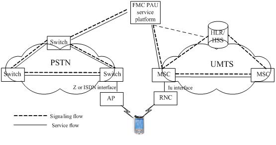 在FMC-PAU中,移動終端屬于雙;蚨嗄=K端,用戶使用該終端既可以接入到3G移動網(wǎng),也可以采用無線方式通過接入節(jié)點(AP)接入到PSTN網(wǎng)絡中。