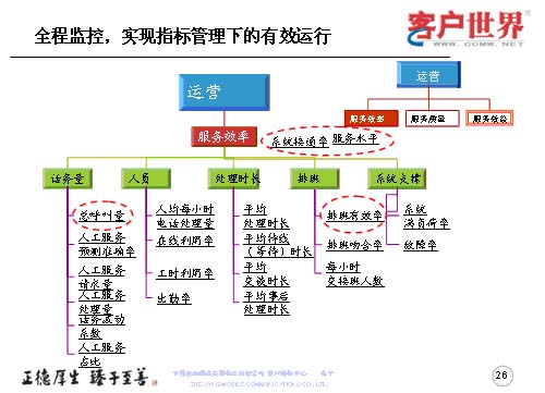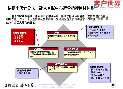 第一,是依據(jù)平衡計分卡原理,建立了客服中心運營指標監(jiān)控體系,以實現(xiàn)呼叫中心的規(guī);(jīng)濟運營。