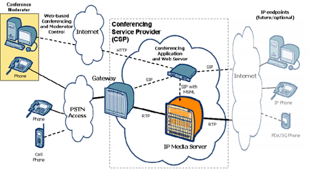 — 而屬于現(xiàn)在。許多CSP已開(kāi)始采用應(yīng)用服務(wù)器、媒體服務(wù)器和媒體網(wǎng)關(guān)來(lái)運(yùn)營(yíng)具成本效益的IP數(shù)據(jù)中心,從而向PSTN用戶群提供經(jīng)濟(jì)的會(huì)議服務(wù)。