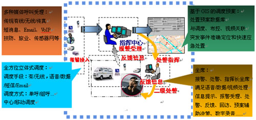 接處警應(yīng)用系統(tǒng)是應(yīng)急聯(lián)動中心的核心部分,系統(tǒng)在保證“先進(jìn)、實(shí)用、可靠”的前提下,與全市應(yīng)急聯(lián)動單位實(shí)現(xiàn)互聯(lián)互通、信息共享;把接處警系統(tǒng)與GPS、有無線通信、視頻監(jiān)控、預(yù)案指揮等技術(shù)系統(tǒng)有機(jī)的結(jié)合在一起,形成“以計(jì)算機(jī)網(wǎng)絡(luò)為基礎(chǔ),以有線、無線通信為紐帶,以接處警信息傳遞、處理為核心,以資源共享和計(jì)算機(jī)輔助決策為載體的綜合性系統(tǒng)工程”,從而提高應(yīng)急聯(lián)動中心的指揮調(diào)度、輔助決策等綜合處置能力,滿足在復(fù)雜條件下指揮、調(diào)度、協(xié)調(diào)、處置城市不同種類和等級的突發(fā)事件的實(shí)戰(zhàn)需要。