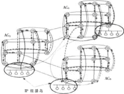 中AG2的a24與AG1的a41之間的連線。各排列圖之間的連線在混合式組播中并不一定作為數據傳輸路徑。