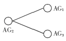 本文把參與IP視頻會議所有主機中的AM組織成分層排列圖結構,作為混合式組播的控制拓撲,并在主機申請加入會議時根據其帶寬處理能力和一定的算法規(guī)定它的入度最大值和出度最大值,它們分別也是剩余入度和剩余出度的初始值。每個分層排列圖都對應一棵以排列圖為結點單位的樹。如圖3所示的以與會主機為單位的拓撲結構是一個由3個A4,2結構(AG1、AG2和AG3)所組成的分層排列圖。圖3也可以看作如圖4所示的以排列圖為單位的樹結構,即以排列圖AG2為根、以AG1和AG3為葉子的一棵樹狀拓撲。設在分層排列圖中,父排列圖AGi中的結點i1和i2分別是子排列圖AGj的數據源結點和備用數據源結點,AGj中的結點j1和j2分別是i1和i2對應的根結點,則在樹拓撲中父排列圖AGi與子排列圖AGj的連線實際上包括2條