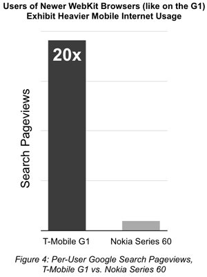 還有個(gè)例子:T-Mobile G1的用戶使用Google的頻率是諾基亞S60系列用戶的20倍。