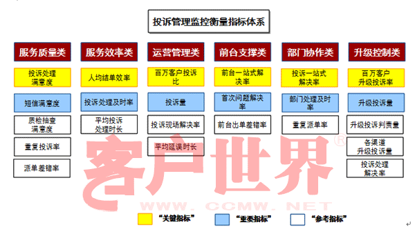 根據(jù)以上依據(jù)分析,收集影響投訴管理工作的各方面指標,再結(jié)合以上原則對所收集的指標進行篩選,即可設計出一套適合實際運營的投訴管理工作監(jiān)控衡量的指標體系。