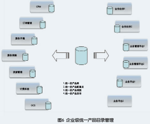 其次建立統(tǒng)一產(chǎn)品目錄,先完成對CRM、計費(fèi)系統(tǒng)的產(chǎn)品目錄統(tǒng)一管理,實現(xiàn)新產(chǎn)品的單點(diǎn)配置、統(tǒng)一發(fā)布。
