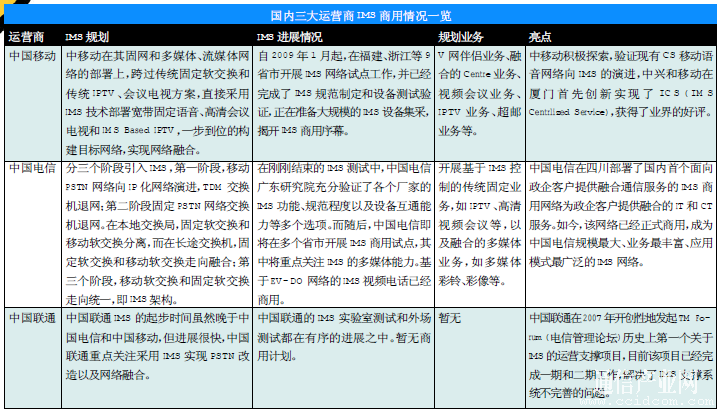 國內(nèi)三大運營商已經(jīng)開始積極試點和部署IMS商用網(wǎng)絡,樹立全業(yè)務競爭市場的優(yōu)勢。