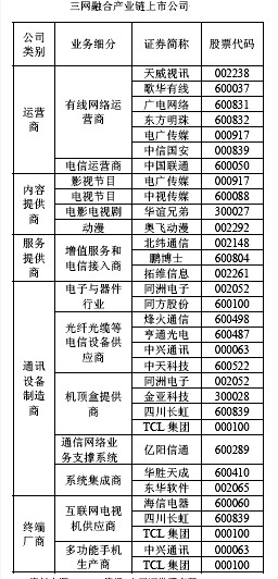 這意味著電信網(wǎng)、廣播電視網(wǎng)和互聯(lián)網(wǎng)實現(xiàn)三網(wǎng)互聯(lián)互通、資源共享的概念,在中國正在變成一場多媒體通訊實踐;也意味著通信信息領(lǐng)域?qū)⒂瓉硪粋閃耀的投資亮點,通訊設備商、電信運營商、有線運營商和內(nèi)容提供商等將直接受益。