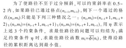 把測(cè)試模版的各個(gè)幀號(hào)n=1,…,N在一個(gè)二維直角坐標(biāo)系的橫軸上標(biāo)出,把參考模版的各幀號(hào)m=1,…,M在縱軸上標(biāo)出,通過(guò)這些表示幀號(hào)的整數(shù)坐標(biāo)畫出的橫縱線即可形成一個(gè)網(wǎng)格,網(wǎng)格中的每一個(gè)交叉點(diǎn)(n,m)表示測(cè)試模版中某一幀與訓(xùn)練模版中某一幀的交叉點(diǎn)。動(dòng)態(tài)規(guī)劃算法可以歸結(jié)為尋找一條通過(guò)此網(wǎng)格中若干格點(diǎn)的路徑,路徑通過(guò)的格點(diǎn)即為測(cè)試和參考模版中距離計(jì)算的幀號(hào)。