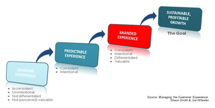 目前多數(shù)電信企業(yè)提供的都是‘隨機(jī)’體驗(yàn)。隨機(jī)體驗(yàn)是各種不連續(xù)端到端體驗(yàn)的集合體。它發(fā)生在整體客戶體驗(yàn)未得到恰當(dāng)管理或企業(yè)漠視客戶與員工的情況下。最終這將導(dǎo)致品牌走向墮落以及丟失有價(jià)值的客戶、利潤(rùn)和企業(yè)價(jià)值。如果企業(yè)不想如上所述這樣慘淡收?qǐng),那么他們至少要做到?chuàng)造和交付一種可預(yù)測(cè)的體驗(yàn)——連續(xù)且有意向的(見(jiàn)圖1)。