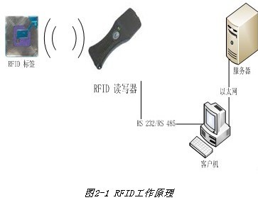 RFID的基本工作原理是利用空間電感額耦合或者電耦合來(lái)進(jìn)行通信,以達(dá)到自動(dòng)識(shí)別被標(biāo)識(shí)物體的目的。將RFID標(biāo)簽安裝在被識(shí)別物體上(粘貼、插放、掛佩、植入等),當(dāng)被標(biāo)志物體進(jìn)入無(wú)線射頻識(shí)別系統(tǒng)的閱讀范圍時(shí),標(biāo)簽和讀寫器之間進(jìn)行非接觸式信息通信,標(biāo)簽向讀寫器發(fā)送攜帶信息,讀寫器接收這些信息并進(jìn)行解碼,傳輸給后臺(tái)處理計(jì)算機(jī),完成整個(gè)信息處理過程。