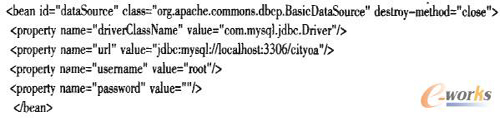 與本地開(kāi)發(fā)不同的是云計(jì)算平臺(tái)下,由于服務(wù)器采用虛擬主機(jī)技術(shù),無(wú)法像本地服務(wù)器那樣配置數(shù)據(jù)庫(kù)連接池,因此需要CRM系統(tǒng)自己管理數(shù)據(jù)庫(kù)連接池。本系統(tǒng)使用Spring管理下的數(shù)據(jù)庫(kù)連接池,運(yùn)用Apache開(kāi)源DBCP框架配置連接池代碼如下: